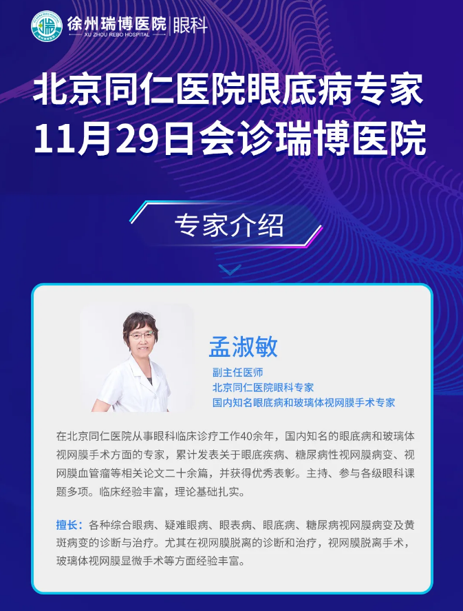 【專家快訊】11月29日 北京同仁醫(yī)院眼底病專家會診瑞博醫(yī)院眼科
